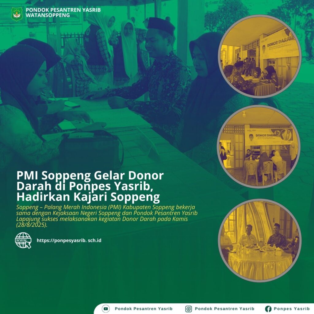 Soppeng – Palang Merah Indonesia (PMI) Kabupaten Soppeng bekerja sama dengan Kejaksaan Negeri Soppeng dan Pondok Pesantren Yasrib Lapajung sukses melaksanakan kegiatan Donor Darah pada Kamis (28/8/2025). Bertempat di Aula Ponpes Yasrib, kegiatan dimulai sejak pukul 08.00 WITA dan mendapat antusiasme tinggi dari masyarakat, santri, serta berbagai pihak yang hadir. Ketua Kejaksaan Negeri Soppeng hadir […]