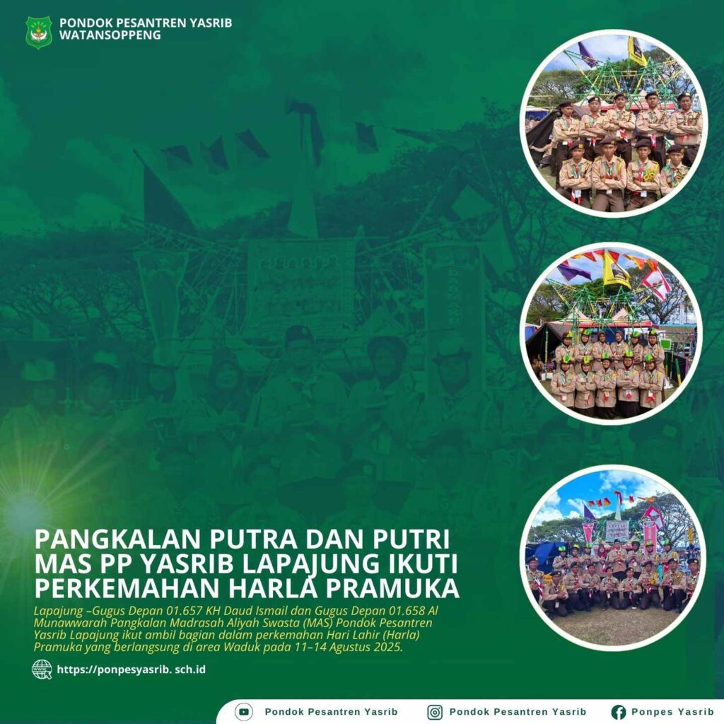 Lapajung –Gugus Depan 01.657 KH Daud Ismail dan Gugus Depan 01.658 Al Munawwarah Pangkalan Madrasah Aliyah Swasta (MAS) Pondok Pesantren Yasrib Lapajung ikut ambil bagian dalam perkemahan Hari Lahir (Harla) Pramuka yang berlangsung di area Waduk pada 11–14 Agustus 2025. Kegiatan ini diikuti oleh regu putra dan putri yang merupakan perwakilan pramuka aktif MAS PP […]
