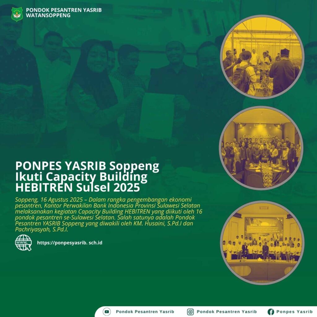 Soppeng, 16 Agustus 2025 – Dalam rangka pengembangan ekonomi pesantren, Kantor Perwakilan Bank Indonesia Provinsi Sulawesi Selatan melaksanakan kegiatan Capacity Building HEBITREN yang diikuti oleh 16 pondok pesantren se-Sulawesi Selatan. Salah satunya adalah Pondok Pesantren YASRIB Soppeng yang diwakili oleh KM. Husaini, S.Pd.I dan Pachriyasyah, S.Pd.I. Kegiatan ini dirangkaikan dengan studi banding ke beberapa pondok […]