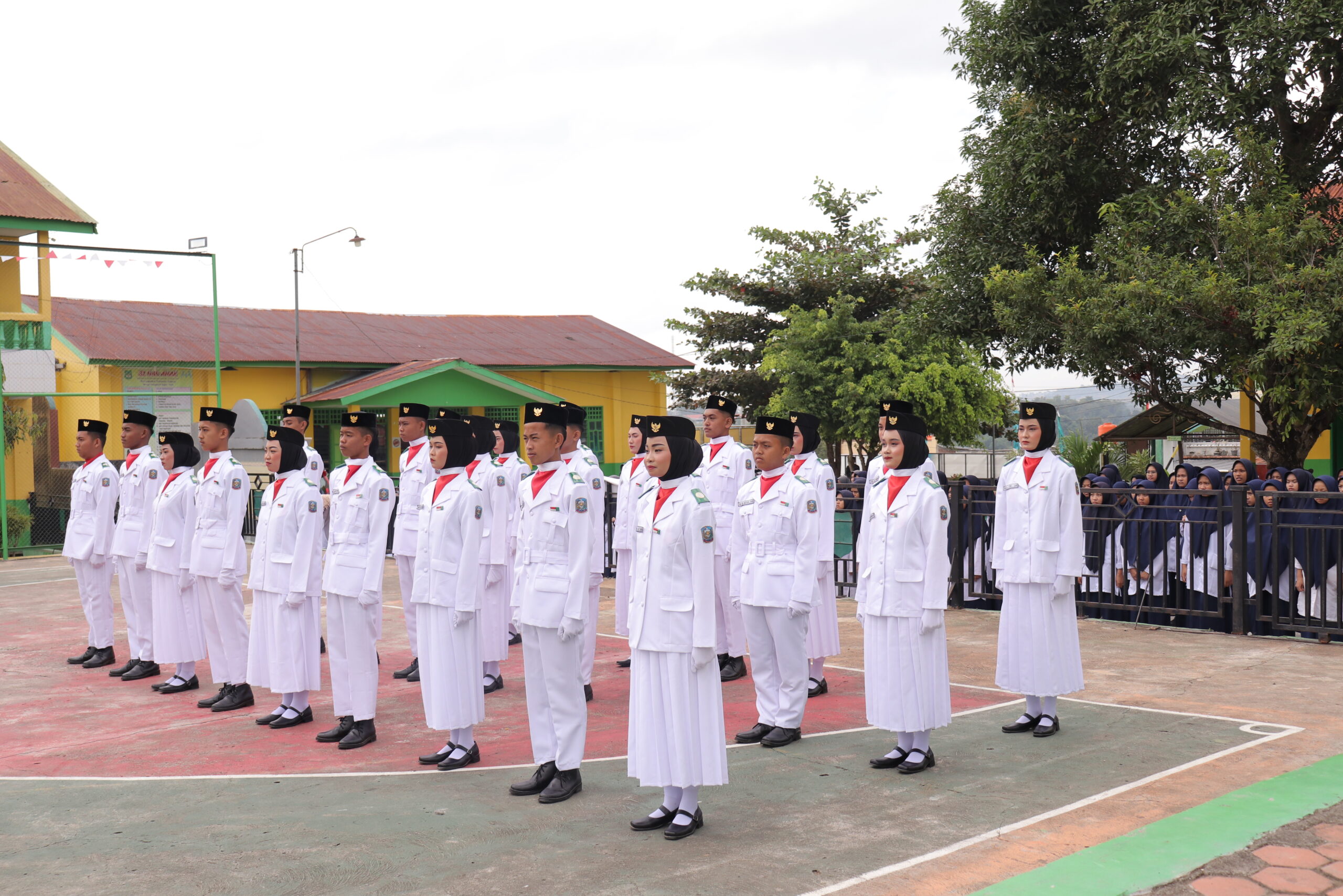 PASKIBRAKA di Pondok Pesantren Yasrib merupakan salah satu kegiatan ekstrakurikuler yang bertujuan menanamkan nilai-nilai kedisiplinan, tanggung jawab, serta semangat cinta tanah air kepada para santri. Melalui latihan baris-berbaris yang terstruktur dan pembinaan mental, santri dibina untuk memiliki jiwa kepemimpinan, kekompakan, serta rasa percaya diri yang tinggi. Kegiatan ini juga menjadi ajang pengembangan fisik dan mental yang positif, sekaligus melatih ketegasan dalam bersikap dan bertindak. Selain berperan aktif dalam upacara-upacara resmi pondok, anggota PASKIBRAKA Yasrib juga kerap terlibat dalam berbagai kegiatan seremonial dan lomba baris-berbaris tingkat sekolah dan daerah.